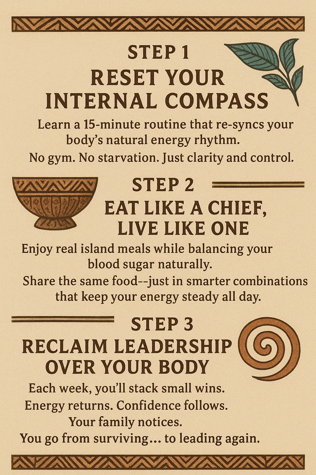 You Don’t Have to Give Up Your Culture to Be Healthy This program honors our island foods and our way of life. We don’t take away what you love — we teach you to live in balance like your ancestors did. “Bula Vinaka. Bula Sautu. Bula Tiko Tawa mudu.” Live well. Live in abundance. Live in lasting balance.
